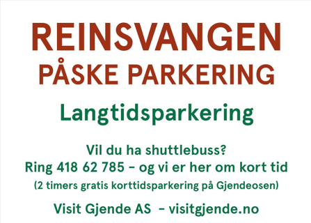 Ønskjer du å førehandbestille shuttlebuss frå Reinsvangen, kan dette gjerast på telefon 418 62 785.
